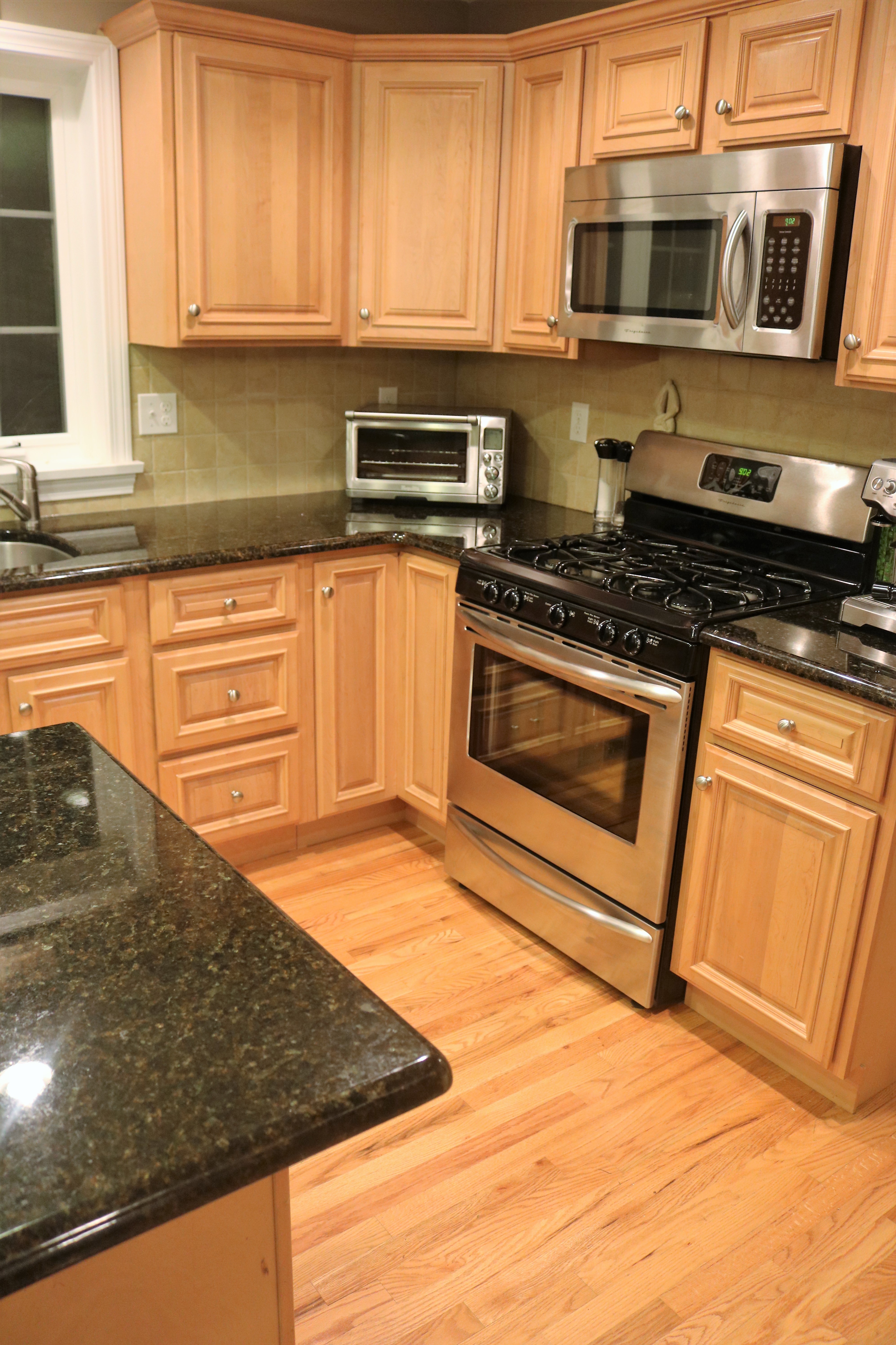 stainless appliances warm wood floors